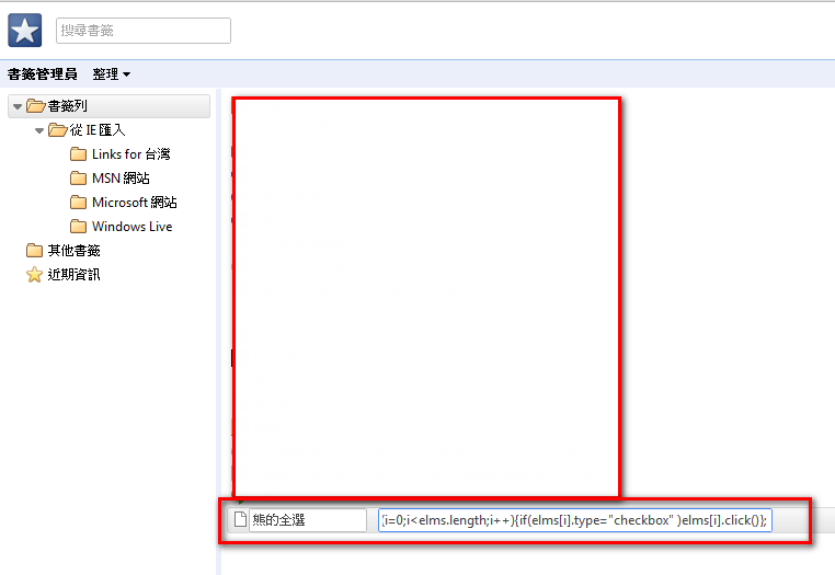 第五步:命名標題,並將語法複製到網頁內,這時候會再google chrome上方的書籤顯示。
