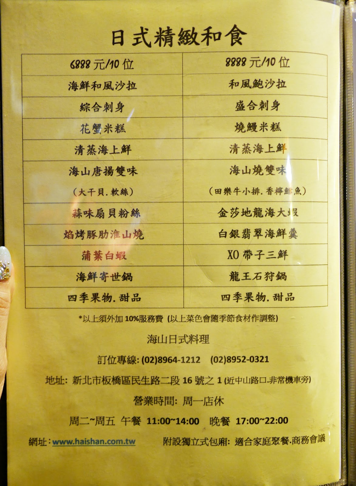 另外海山日式創意料理,也會有每日精選食材(隱藏料理)