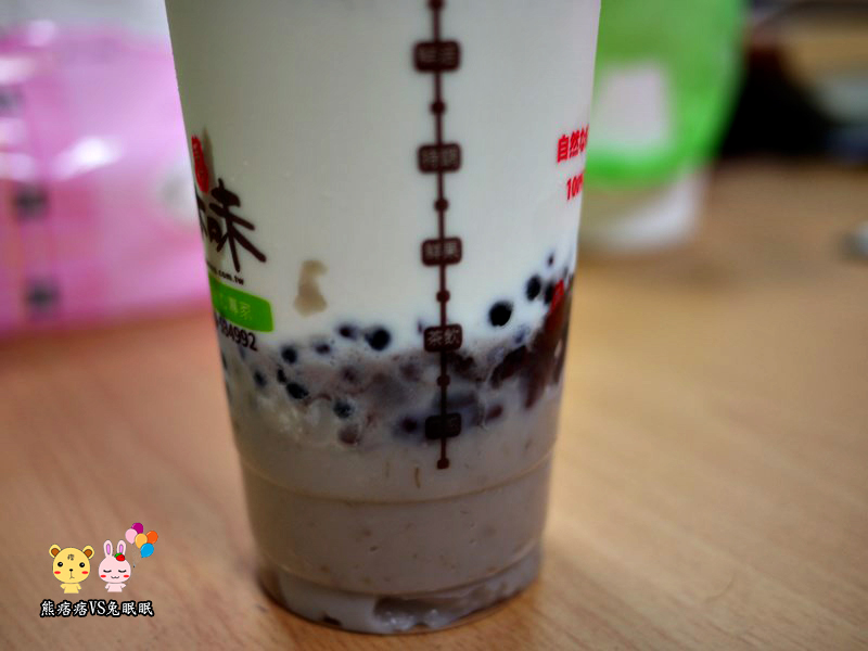 然後我就邊搖邊問老闆這個怎喝,結果老闆阻止我不用搖直接喝,雖然我心中疑問的想在問他,但還是先把吸管插進去喝喝看了,果然!老闆沒騙人,天啊!這家的芋頭好綿,跟紅豆混在一起好好喝,不過芋頭本身還蠻甜的,個人建議微糖或半糖就不錯了,很有飽足感。