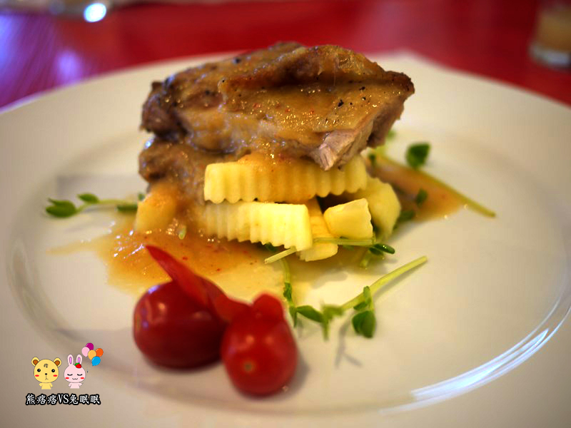 第五道菜是主餐蘋果雞腿,這個部分我就覺得還,雖然雞肉本身會帶點蘋果的香甜,但沒有很驚艷。