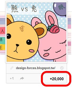 非常謝謝【兩光煮婦Eva的走跳日誌】,幫熊痞痞vs兔眠眠的【Google + 粉絲團】,拍下了2萬粉絲的紀錄照片,這邊偷偷跟大家介紹一下,兩光煮婦Eva,是一位喜歡美食旅遊,又熱愛塗鴉攝影的部落客,算是熊的前輩。