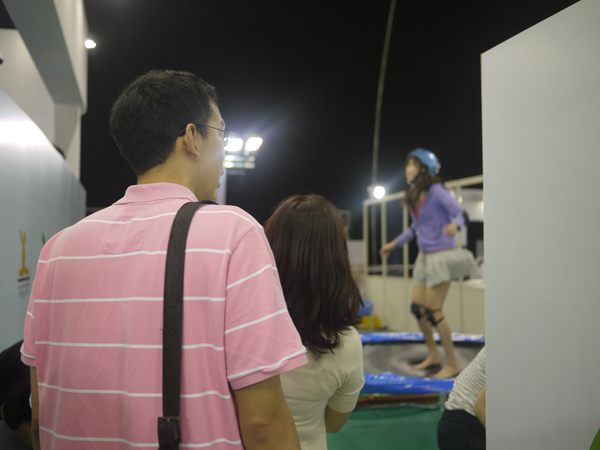 挑戰完鐵人三項後,緊接而來的是這個彈簧遊戲….當時看到一個美女穿裙子來跳時….我想大家都在思考…這樣不會曝光嗎= =””?