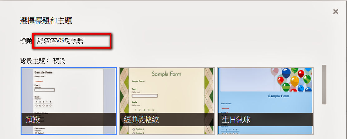 步驟四:進入表單後,請先輸入該表單標題,並選擇背景。