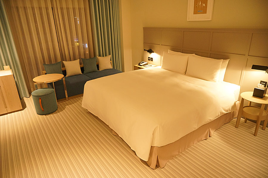 這就是今天可以躺的大床啦!乾淨整潔,躺起來又舒服,被子應該是夏天的關係,略薄些,建議冷氣不要開太強,我那天剛好遇到下雨所以覺得有些冷。