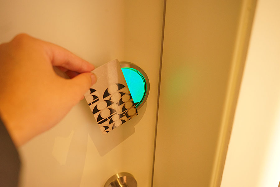 一般逼聲響起就可以直接入住了,然而這裡還會先出現綠光還有點帶藍的那種,之後燈熄即可入住。