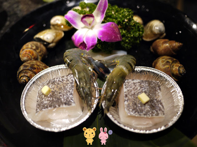 深海琥珀蝦、招牌霸王蝦、白蝦、蛤礪、香魚、花枝等等高級的海鮮磅礡登場。