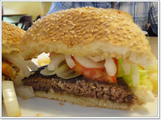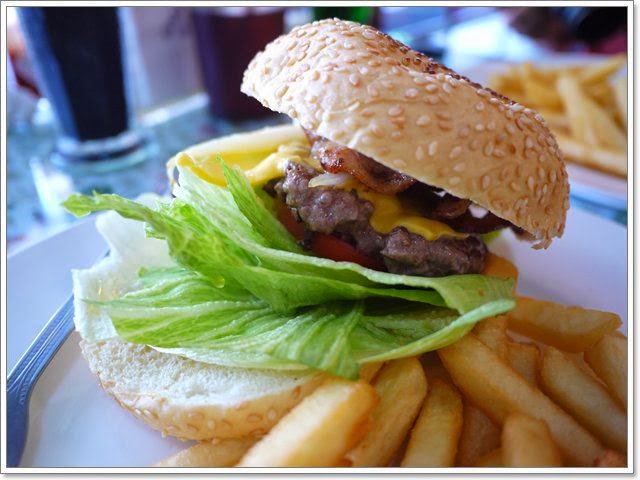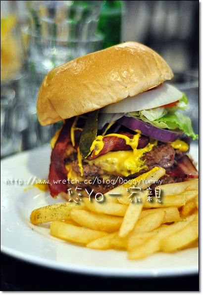 漢堡的size不算太大,不過厚度可是相當驚人,而且揪西的漢堡肉還透著粉粉的迷人色澤,附菜還有酥脆的薯條,這樣的份量對YYB來說將將好。
