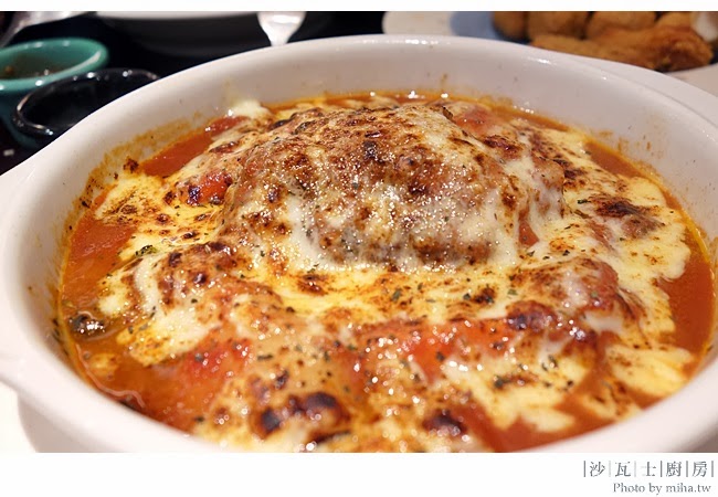 又是一個比臉大的碗上桌,整個鋪滿滿的焗烤,然後裡面一挖開就是漢堡肉,是的,漢堡排就是漢堡肉,但沒有麵包等等的其他東西。