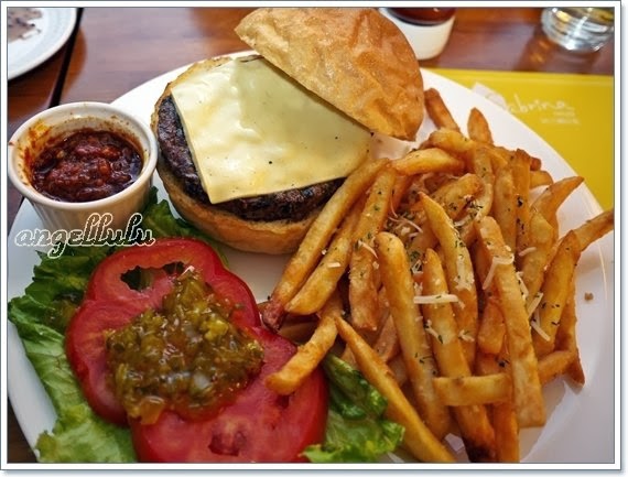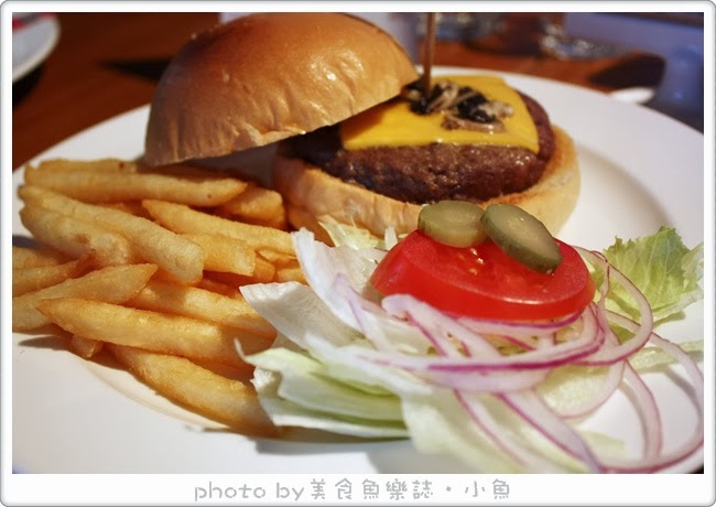 Joyce點的主餐,小鳥胃的她才吃不到一半的漢堡就吃不下啦,這漢堡的份量很大,看起來也很豐富呢!