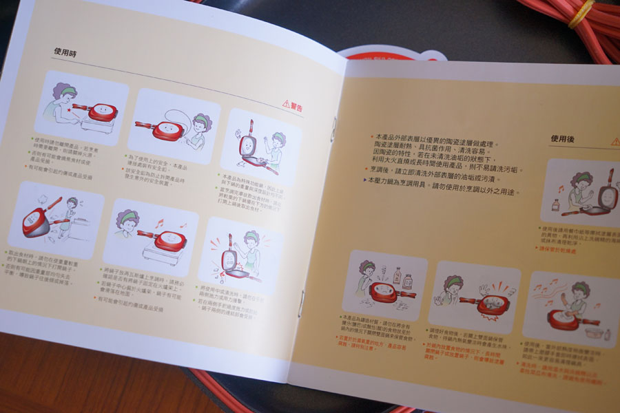打開鍋具後,裡面有一本說明書,建議先看過,他有教你如何保養鍋具的方式。