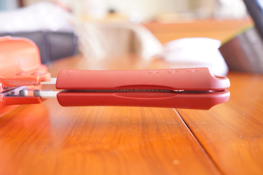 顏色是活力紅,拆開後有相關文件跟鍋具,鍋具外面有一層塑膠套包住。