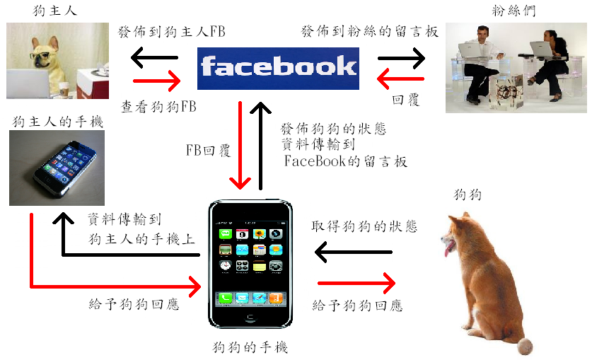 圖. 8. 狗仔報報結合寵物聊天系統示意圖 |