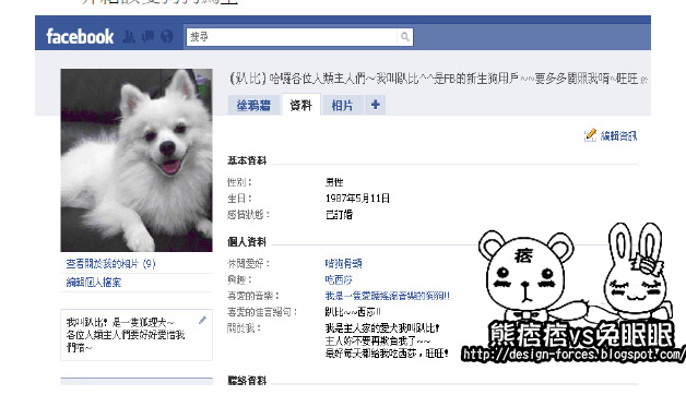 以狗狗的角度,創立一個Facebook 用戶,而裡面的資訊管理,則都是以