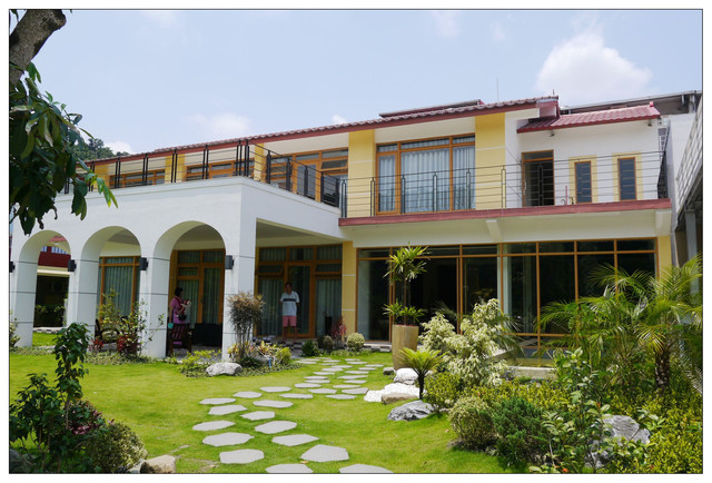 湖畔莊園的外觀是很清爽的鵝黃+白色系~~在一片綠意盎然的梅花湖畔真的很顯眼阿。