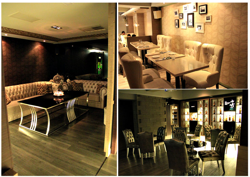 深入內部,映入眼前的是與一樓不同設計風格的房間,整面的酒櫃牆與周遭的環境相互搭配,就像是一間低調的小都會空間,奢華又不失高貴,藏匿著與世隔絕的美食饗宴。