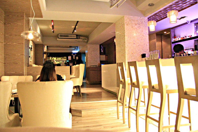 沒想到打開門後,映入眼前的景色,與外頭的感覺差很大,整體環境藉由不同燈光的搭配,將吧檯與用餐區區隔開來,營造出寬敞的空間感,簡單又不失高雅的風格,塑造出不一般般的華麗,正常來說,大家到現場看到的燈光效果,會比兔呆拍的再暗一些。