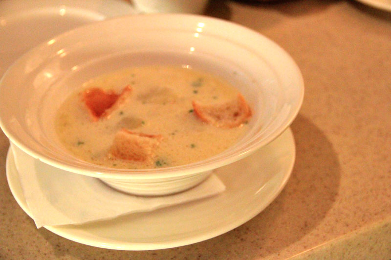 豬丁骨吃起來有點不OK,豬腥味有點重,如果沒有沾很多旁邊的莓果醬汁,會有點吃不下去,偏偏那個莓果醬汁又是有點帶甜的….坦白說這道真的有改進的空間。