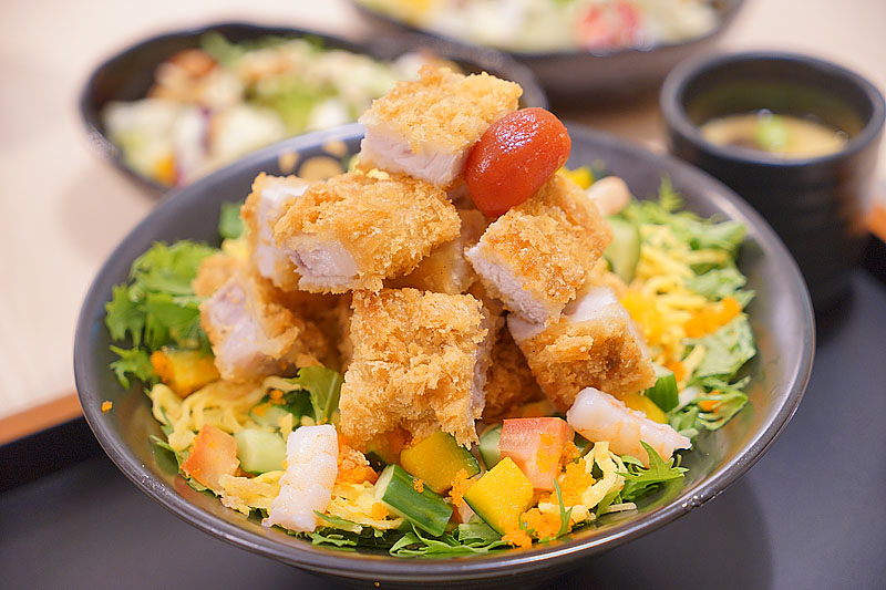 這是花样散壽司丼飯,選用腰內肉,所以吃起來特別軟嫩,跟等等要介紹的豬排是兩種完全不同的口感。