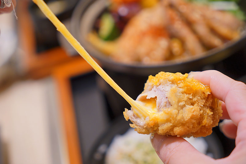 當然新品菜名都提到是【金絲起司蝦豬排】了,這顧名思義的可以牽絲!而且還可以牽很長,是不是很邪惡呢?算是一道口感很豐富的料理。
