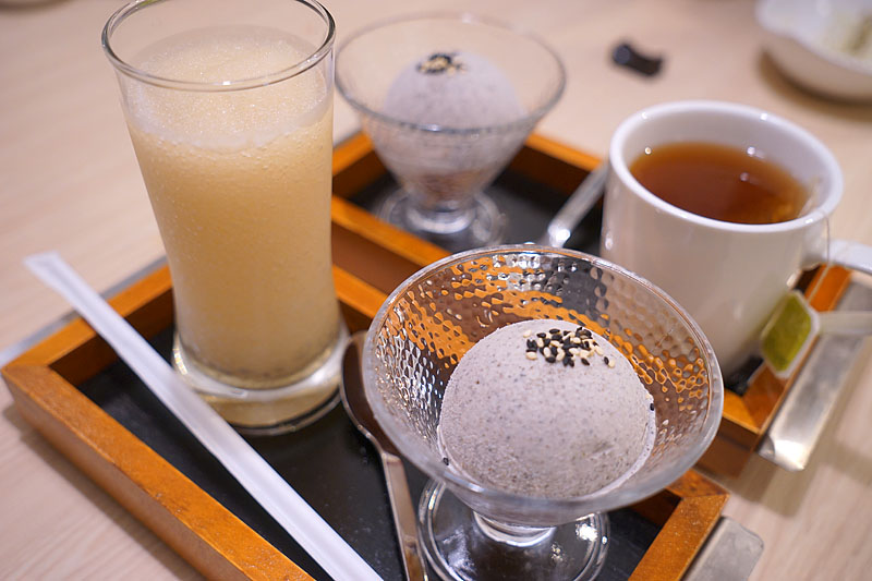點完餐後,先把桌上的芝麻搗碎,邊磨的過程中,芝麻的香氣超明顯,自己DIY磨芝麻的過程除了有趣外,也可以打發等待食物的時間。