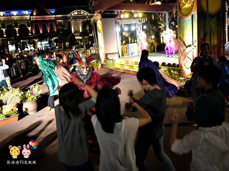 坦白說,這突然其來的派對,真的讓我驚訝到,或許是因為身處異鄉的關係,少了在台灣害怕異樣眼光的牽絆,大多數的遊客都會隨著台上的美女搖擺著身軀,此時的身體不在屬於自己,而是屬於這趟旅行的歡樂,無拘無束的自由,就在今晚引爆開來,只能說光之王國的假面舞會派對,真的辦的很成功呢!