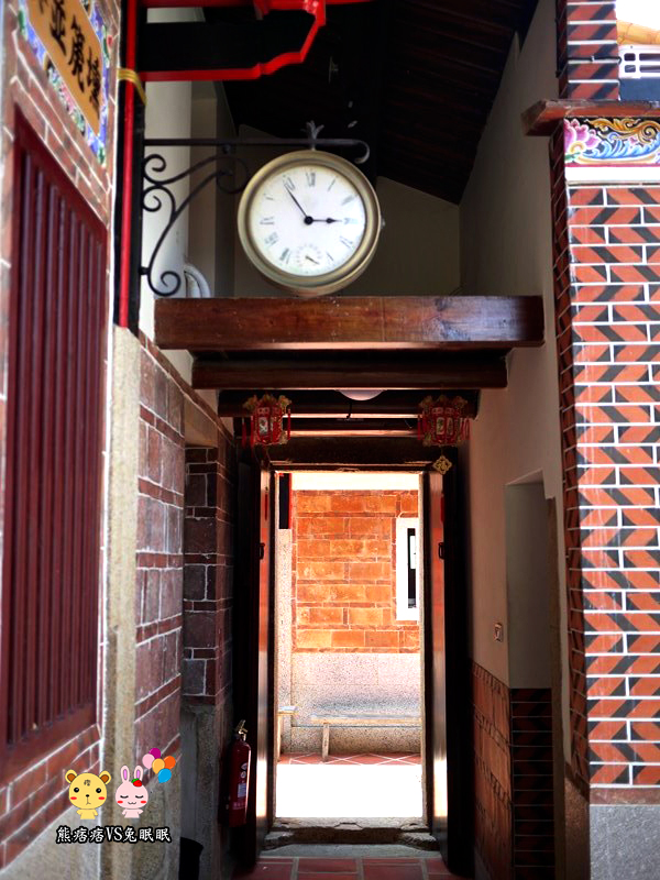 正廳外的左右兩邊,是通往其他廂房或日月井的地方,時鐘後方則是一般古厝閣樓可探出頭的小空間,早期有些家族會把拜拜的東西放在上面。