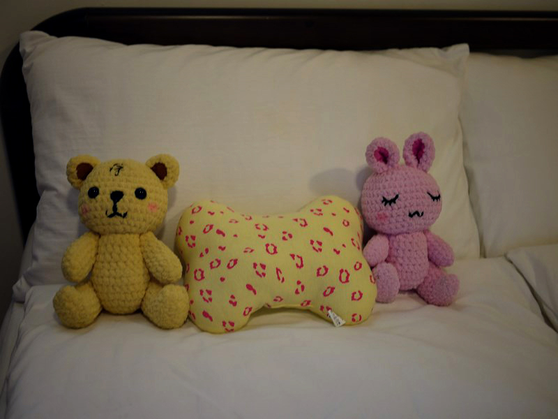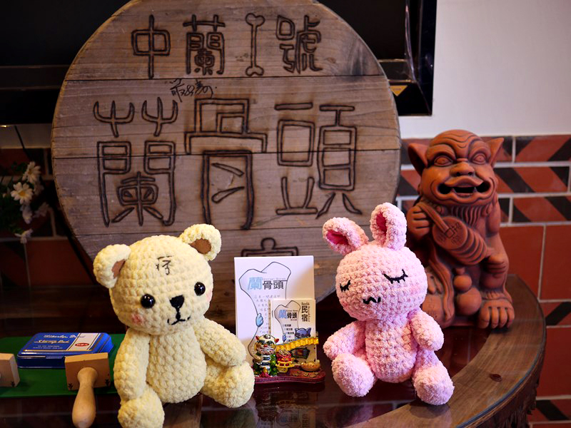 趁著他們不注意,偷偷把熊兔帶進去拍一下照,他們的抱枕很可愛,如民宿【蘭骨頭】之稱,竟然是小骨頭呢!