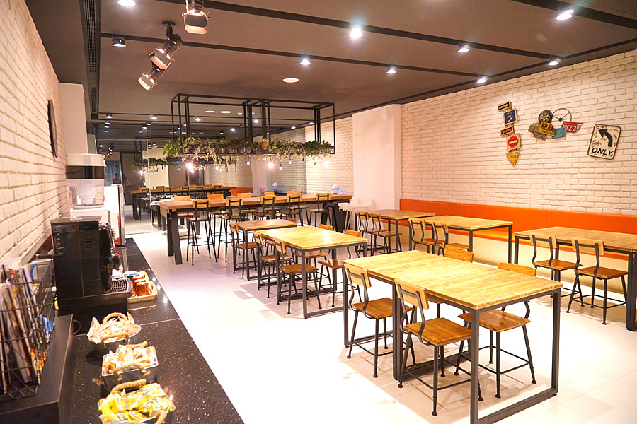 B1則是前面提到的一個重點,這裡有一間24小時飲料喝到飽的餐廳,餅乾零食也可以自己取用,空間寬敞明亮。
