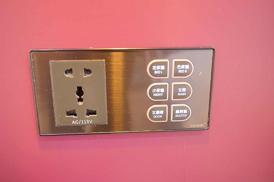 床的旁邊有控制各式各樣情境燈光的按鈕,想要睡覺時也可直接從旁邊控制。