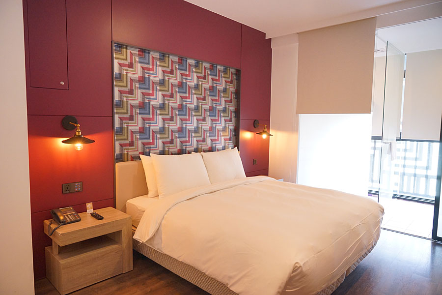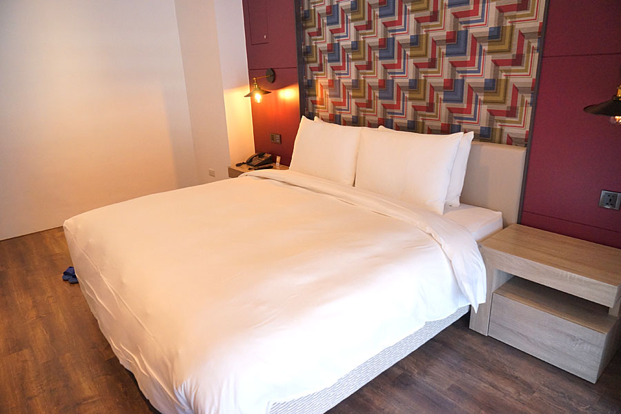 房間的風格有些工業風與復古結合的元素,靠近床邊的圖,仔細一看也會覺得有些些的視覺移位效果,蠻特別的。