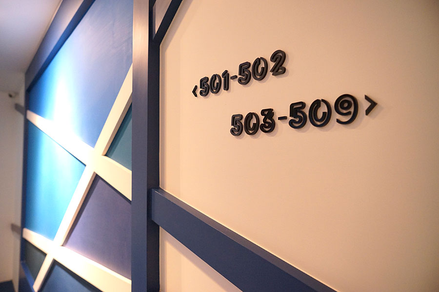 五樓的電梯門一打開,牆壁也是用線條來營造整個氛圍。