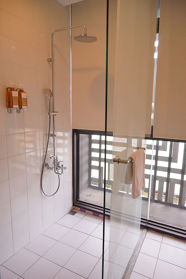 沐浴的地方可以選擇從上方或是旁邊直接沖澡,熱水起來的速度也很快。