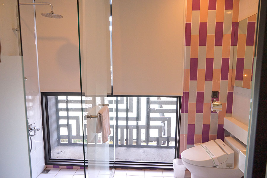 接著就要來介紹一中LAVIE風華旅棧客房的廁所了,這裡的門是沒有鎖的,左右拉移,可以很情趣的看到身影,也可以拉下窗簾保有個人隱私空間。