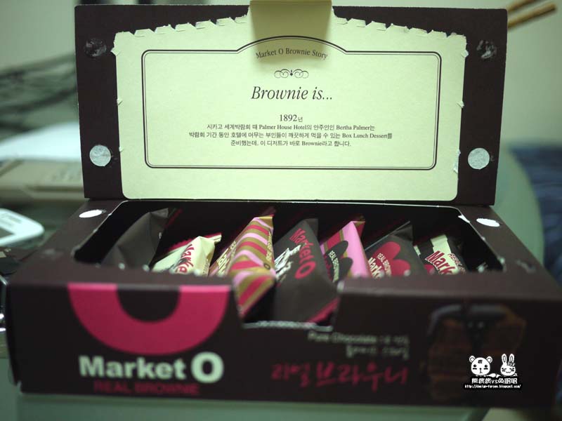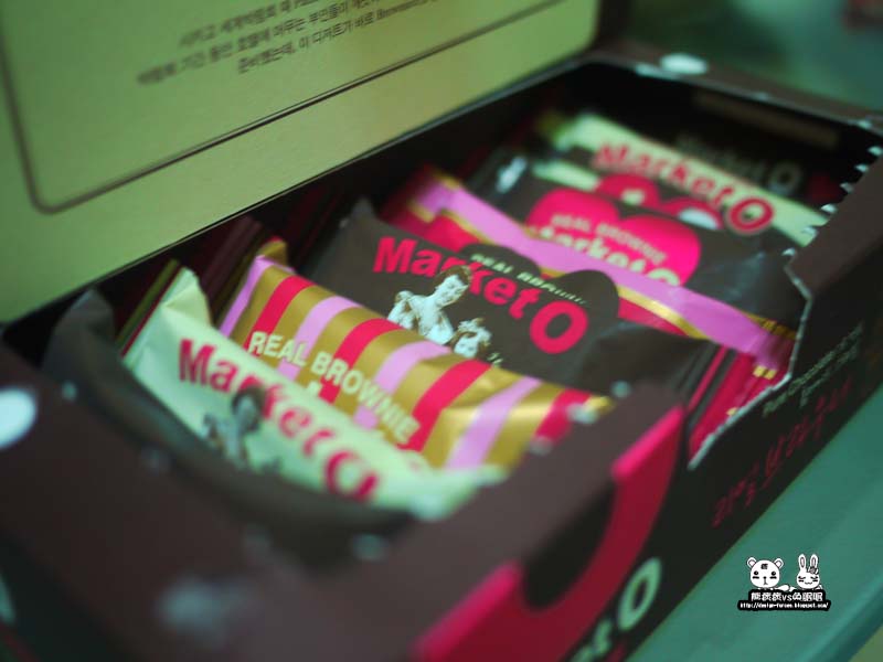 託兔眠眠的福,這是在吃完韓國AnyTime糖果-汽水薄荷後,兔眠眠另一個同事也去韓國所帶回來的MARKET O 巧克力布朗尼,據說MARKET O在韓國非常有名氣,而且價格不便宜呢!可說是去韓國必帶回的零食之一!