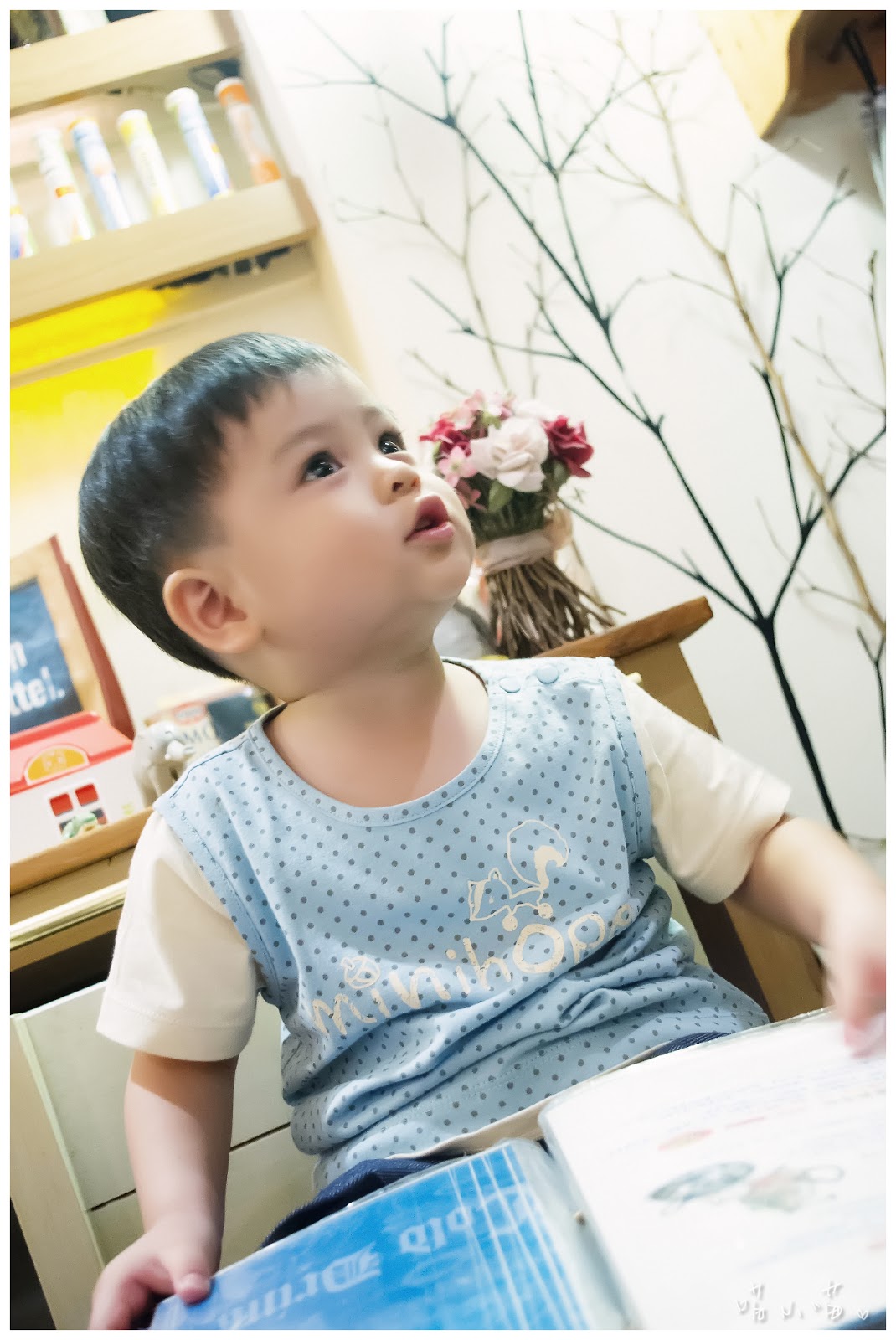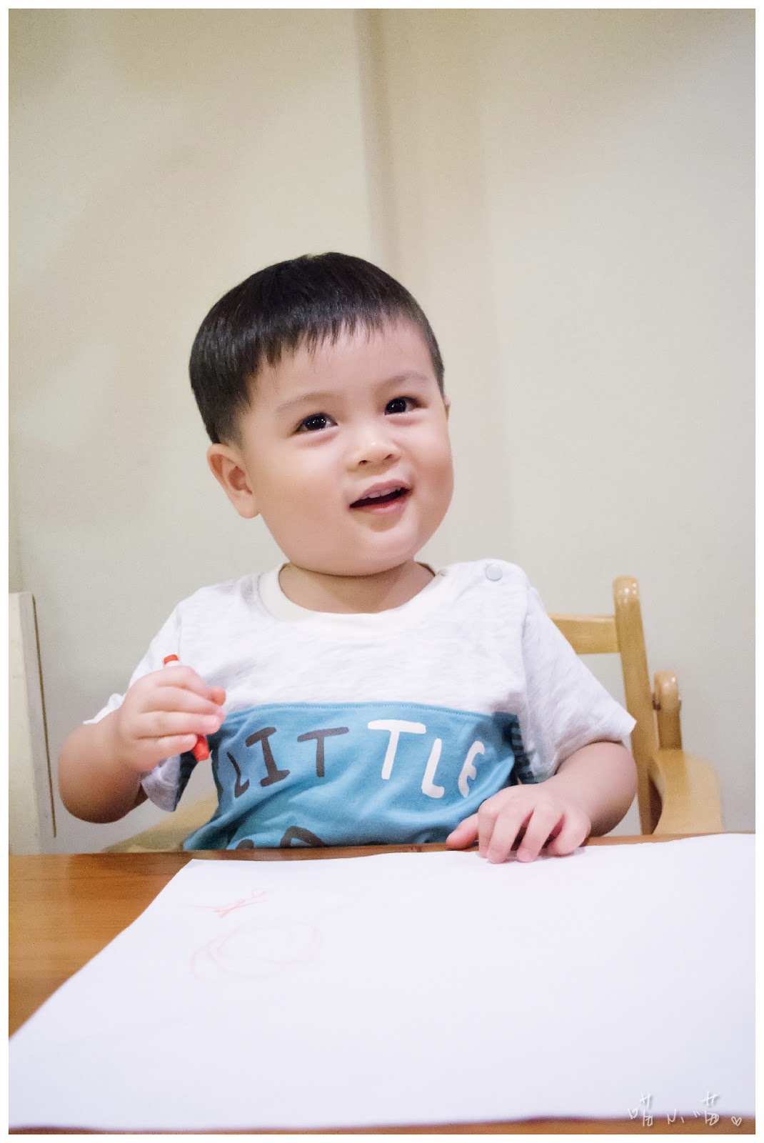 棒棒:「有了!穿了minihope的英文拼接印花上衣後,我現在可是博學多文的小大人,畫畫怎這麼簡單的事情難不倒我的。」