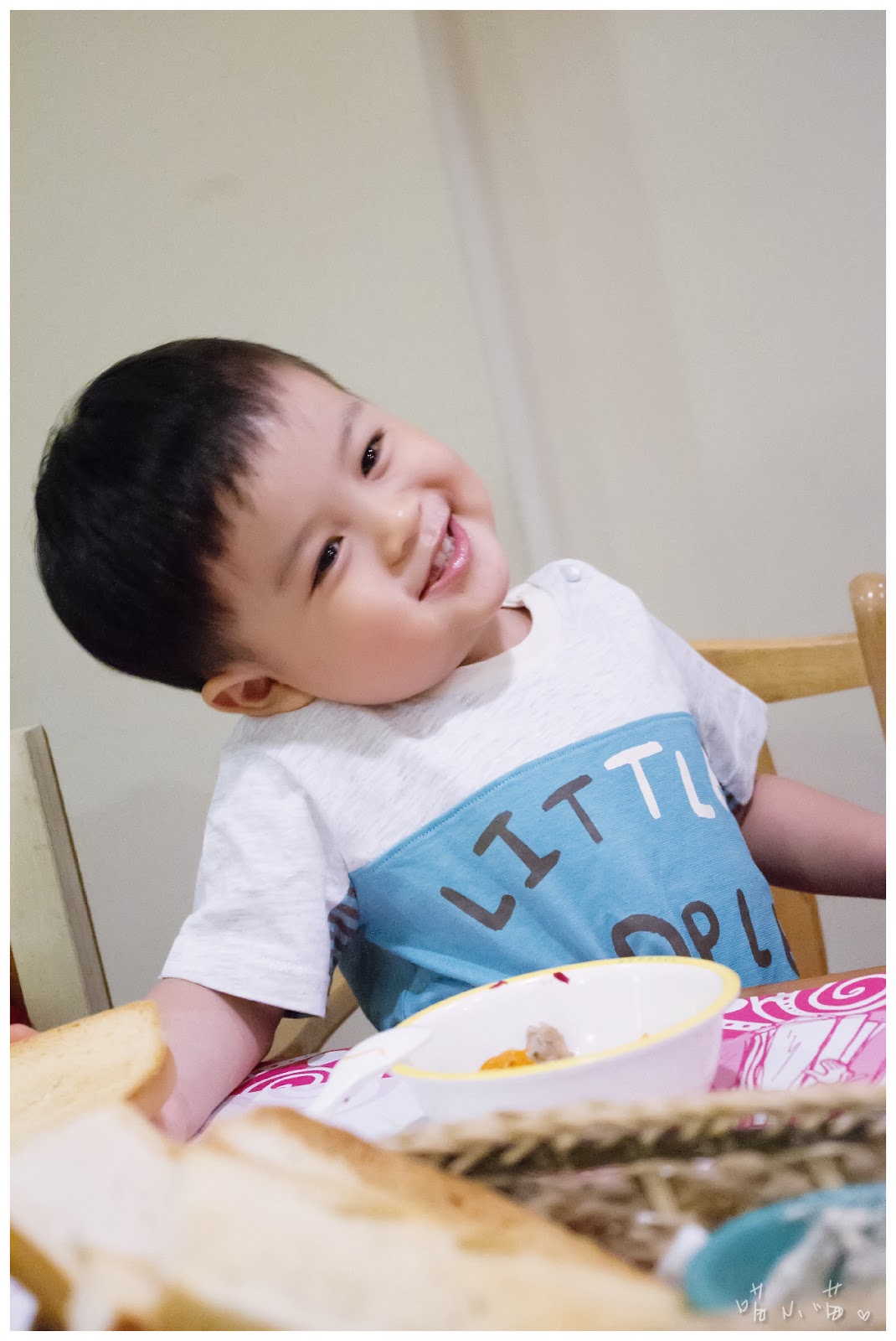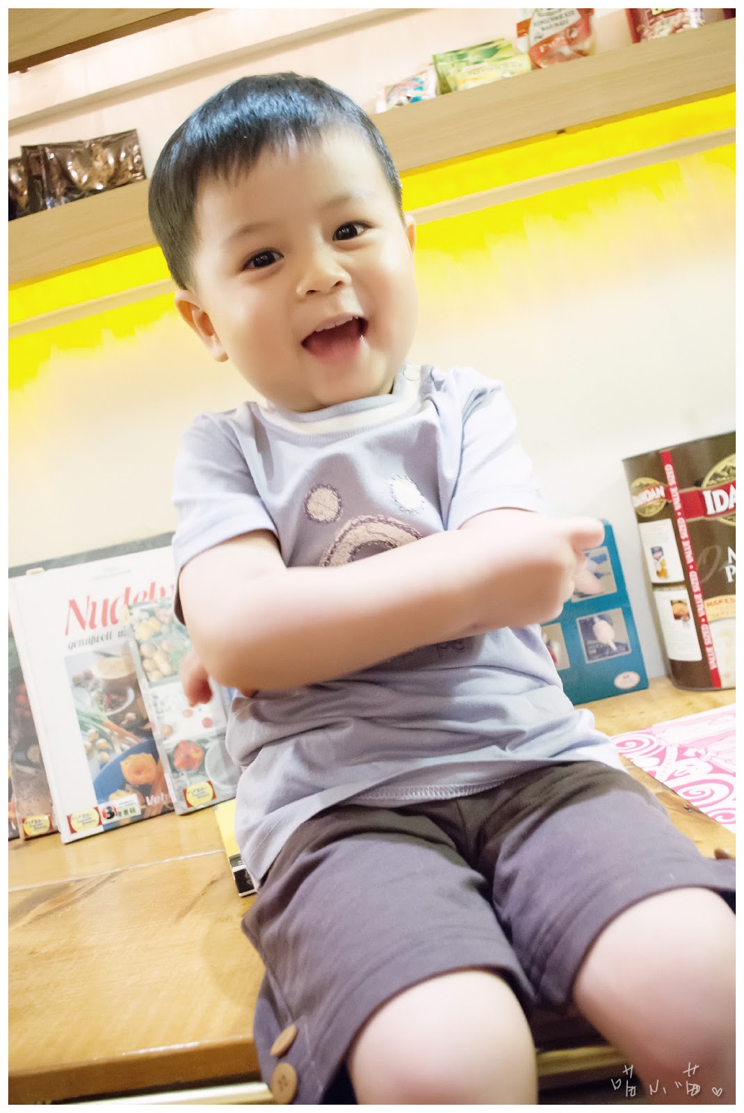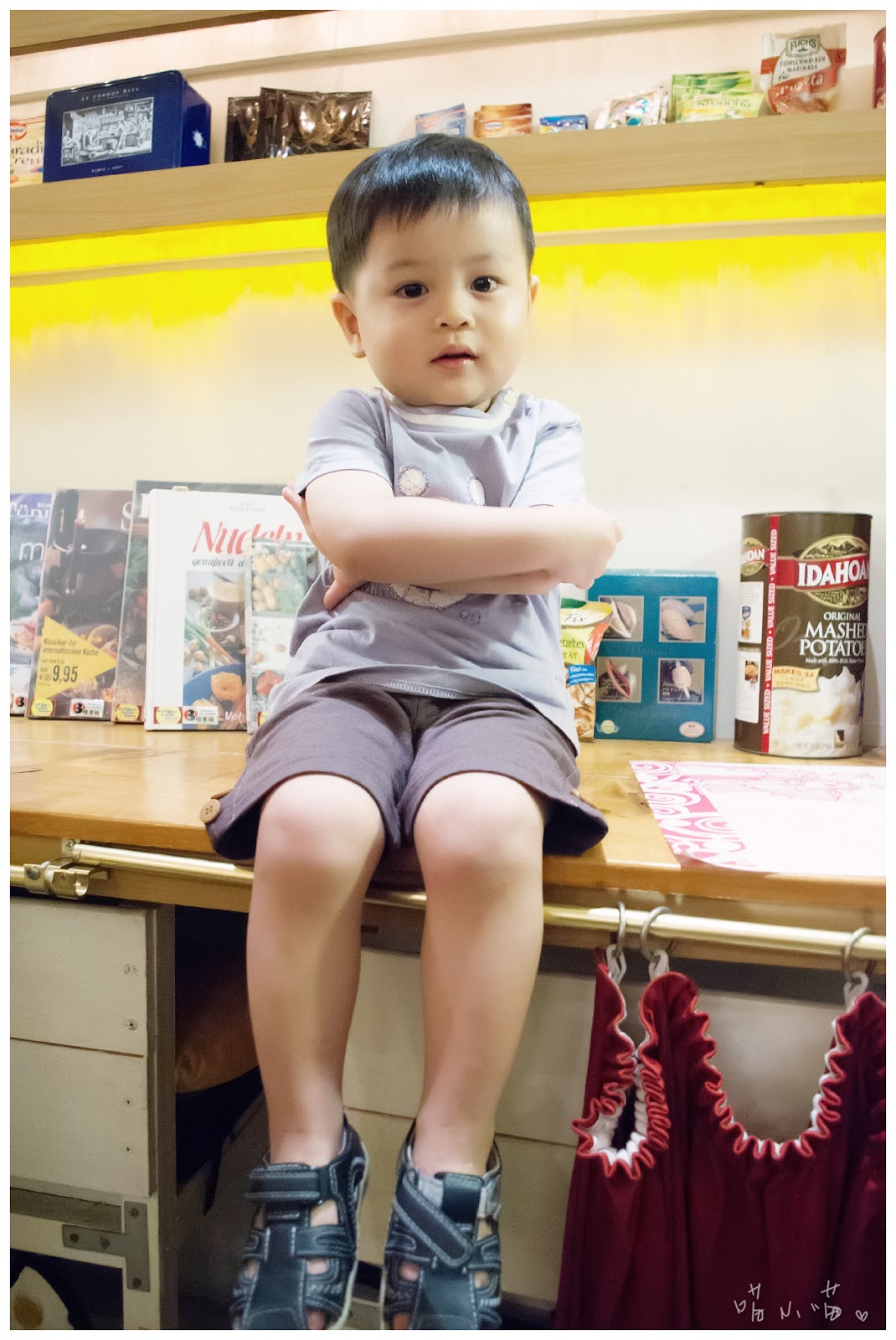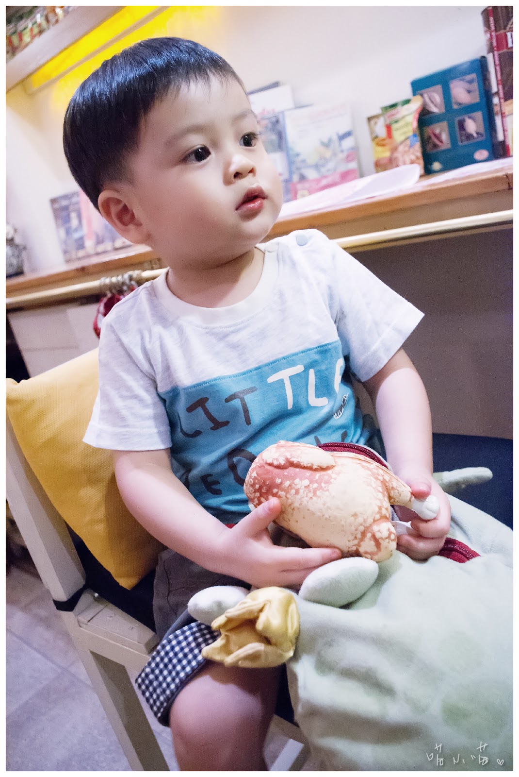 當半夜寫文章寫到這段時,回頭一看,原本應該是一篇溫馨有愛心的童裝文,卻被熊給惡搞了…冏!好啦,趕緊拉回正題,看到以上拍出來的照片,不得不佩服攝影師喵喵的功力,竟然能讓第一次拍童裝穿搭的棒棒,也能在短時間上手拍完這些照片,實在強大!