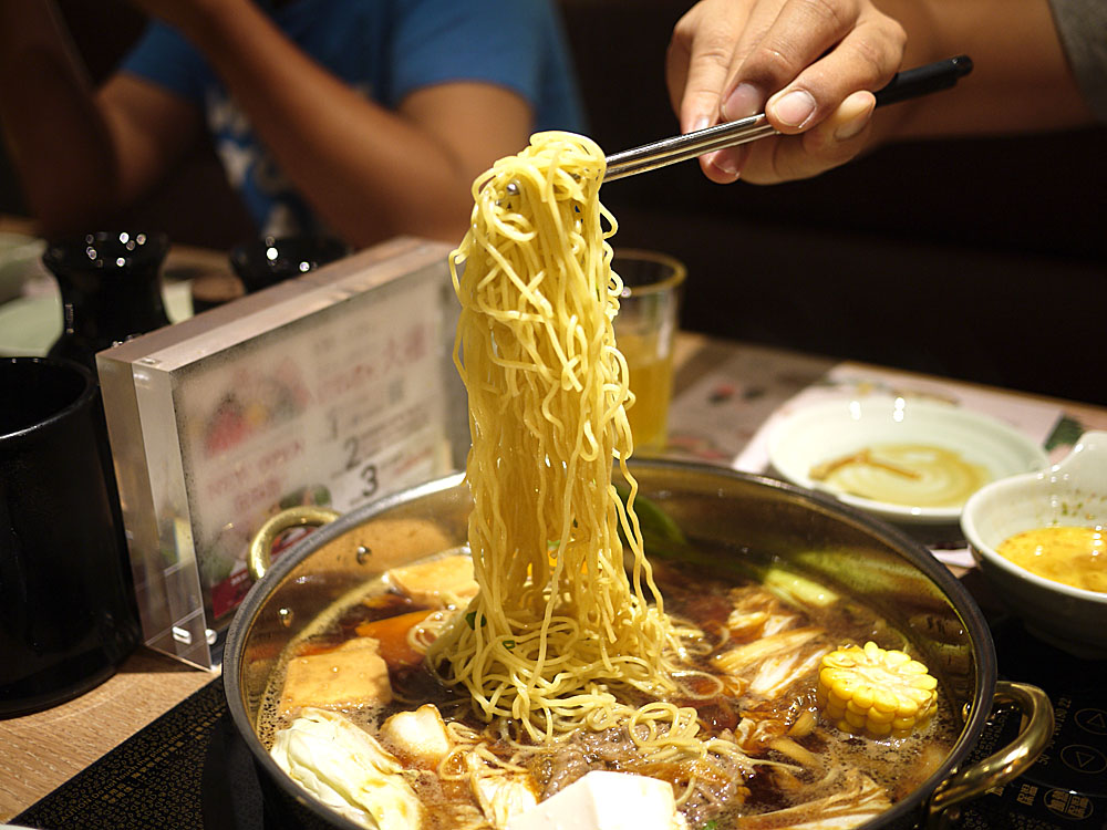 這個不建議放太久,因為放越久味道會越重,壽喜燒有提供原醬跟水,覺得太清淡可以加醬,覺得味道太重則加水,記得不要一直煮忘記加,不然會黏鍋,煮個幾分鐘後,麵超入味的,口感也不賴。