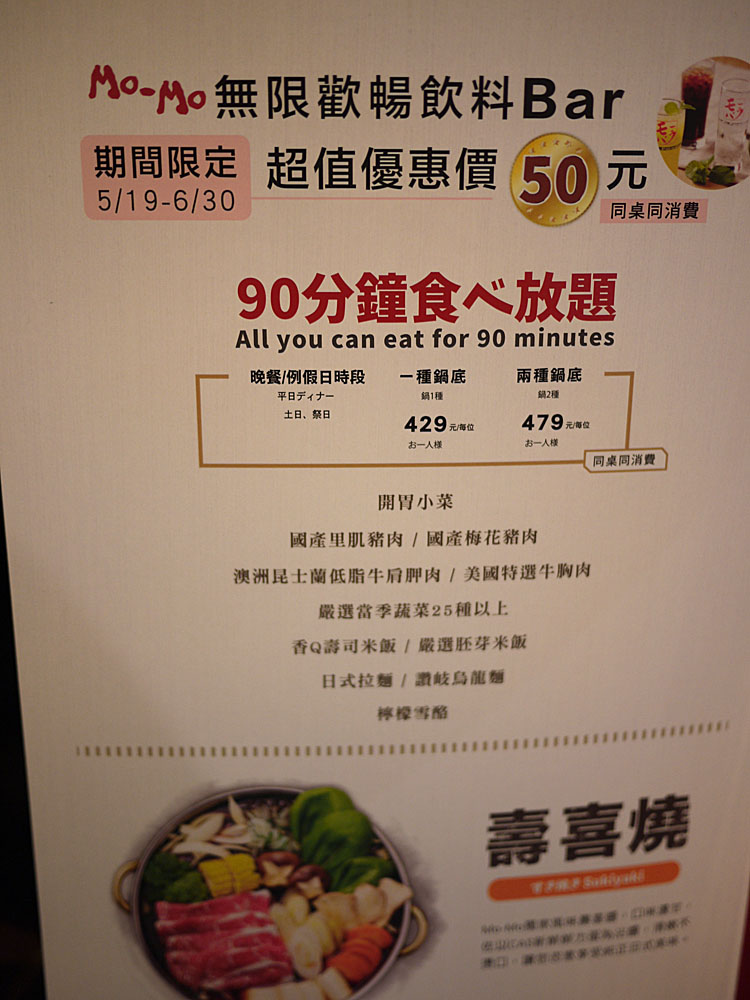 前幾天(5/18)位於台中大魯閣新時代餐廳【momo paradise壽喜燒】正式試營運,是朋友受到邀請,我們去陪著試菜而已,本來沒打算要寫,後來覺得東西不錯吃,所以照片部分是候補隨意拍的,有些畫面沒拍好的地方看看就好,這是第一次來吃這集團的料理,當天的服務態度很棒,可是事後再找集團資訊才發現公益路也有一家momo paradise,服務被罵翻,我無法確定是因為當天被受邀前往的關係還是新開的關係,覺得服務有點兩極,所以不再本篇介紹的重點,食物部分倒是令人滿意。