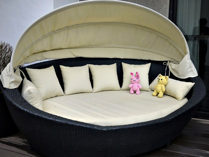 在比較後方還有這種躺椅,我覺得這個很適合有帶小朋友出來的家庭,因為椅子可以轉過來放在角落邊,讓小孩子直接睡在裡面不用擔心滾下床。