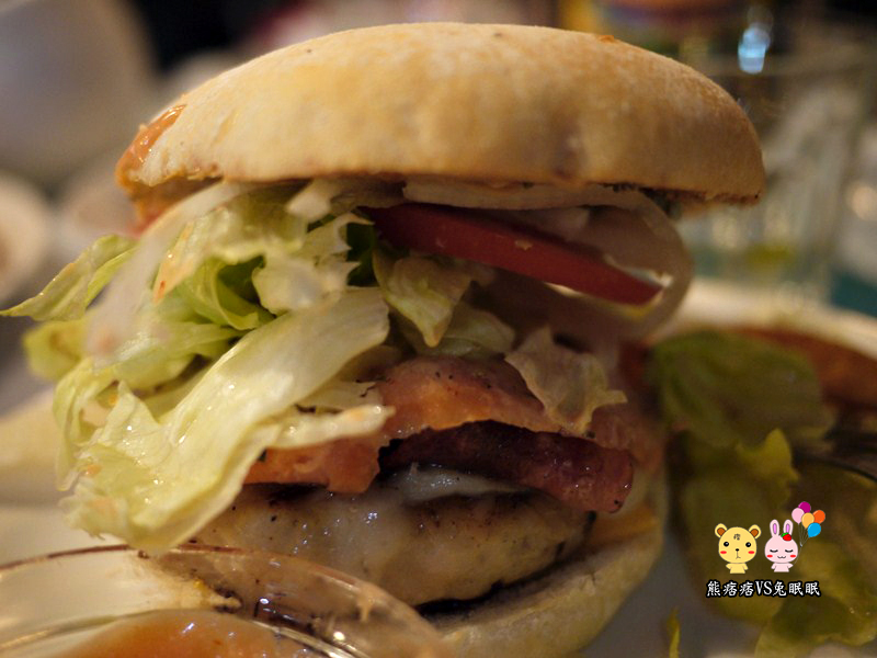 然後熊又不小心點到一個海鮮的【血汗打撈Q蟹堡】,味道還蠻清淡的,所以吃完雞翅再吃他的感覺就是…嗯!我應該點牛肉之類的餐點?這邊不是說東西不好吃,而是當下的味道都被雞翅給搶走了…..T^T。
