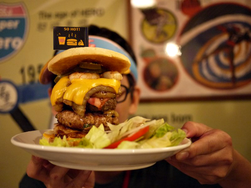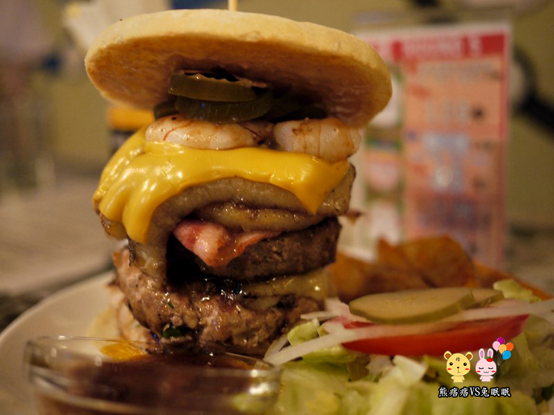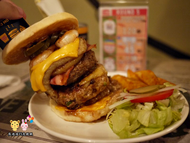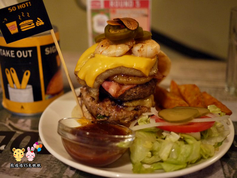 做公益的那天,老闆有跟我提到,他們的漢堡是可以依造自己的喜好來加內餡,曾經還有人疊到四塊牛排堡,於是在那次公益合作後,我就找時間來挑戰他所說的疊四塊!