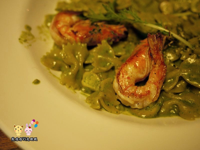 這是青醬的蝴蝶麵,隔壁桌的女同事很喜歡吃這個,反而我覺得味道太淡不是我的菜,我比較喜歡他們點的紅醬蝴蝶麵,所以到後面就兩桌交換吃。