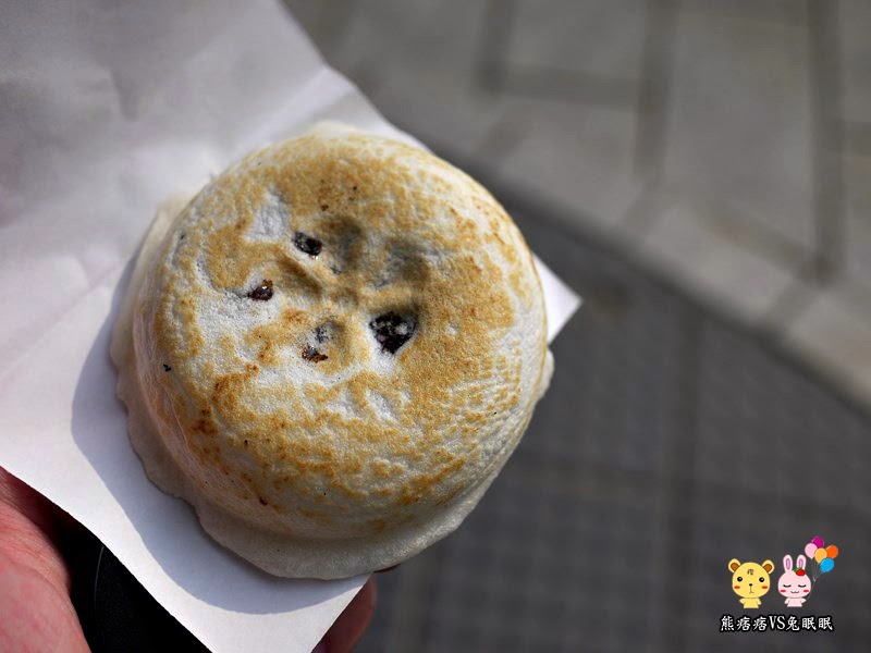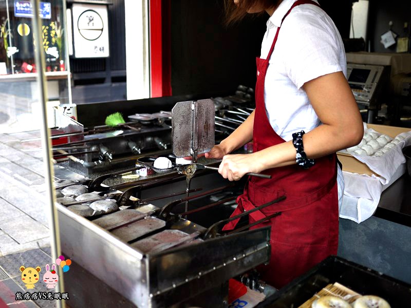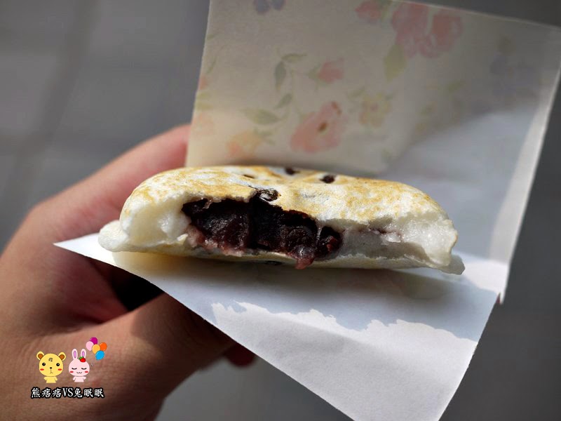 一開始老闆會用米糰將紅豆餡包成一顆圓球,之後放到上圖中的器具兩面翻烤,等到表皮烤到微焦後就可以吃了。