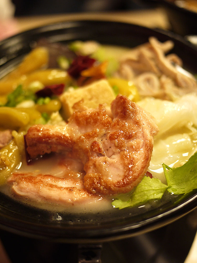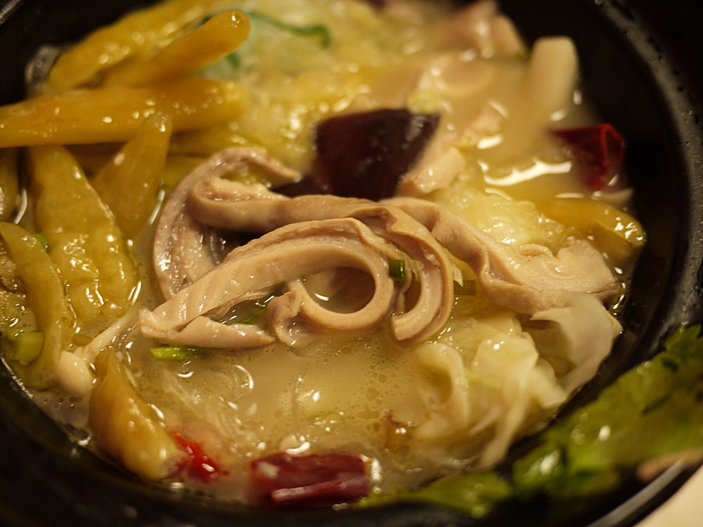 狂野泡椒鍋我覺得是比較偏向吃巧的一款,裡面的用料主要是雞肉、豬肚與泡椒,泡椒蠻多的,是可以直接吃,裡面帶有那種酸酸又辣辣的口感,辣度我因為吃很辣的關係覺得還好,可是隨行的朋友卻受不了。