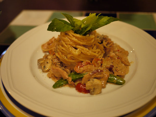 這道菜很重口味,但辣的很有深度,一口接一口的香醇辣味配上奶油燻雞的清爽奶香,不知不覺得讓人想吃完整盤義大利麵,據說如果是吃一整盤的,吃到最後會很爽,也很有辣勁。