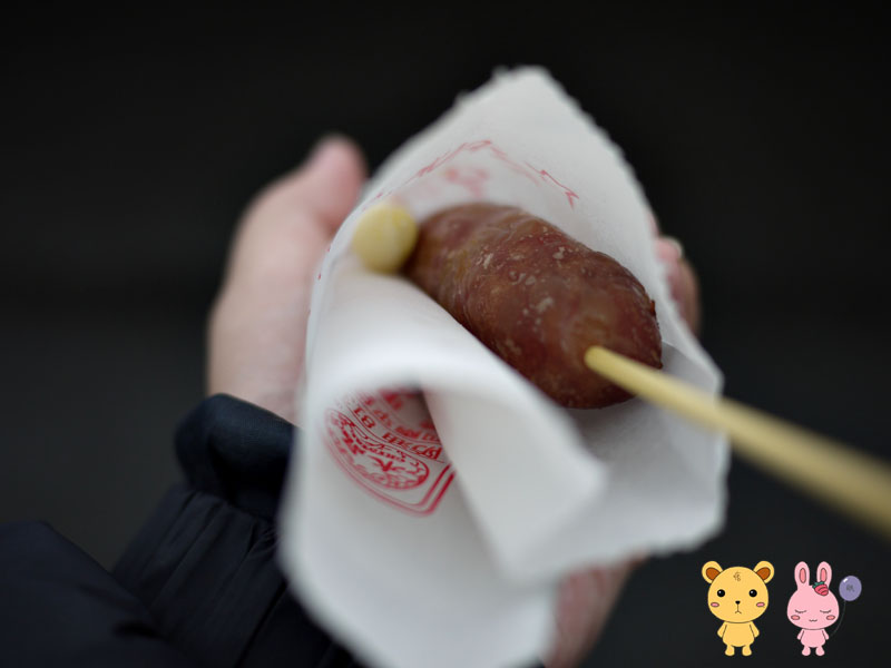 走了一小段的路,終於在裡面看到酒香紹興香腸的招牌,當下直接跟與朋友分道揚鑣來逛,自己先跑去買香腸來吃!