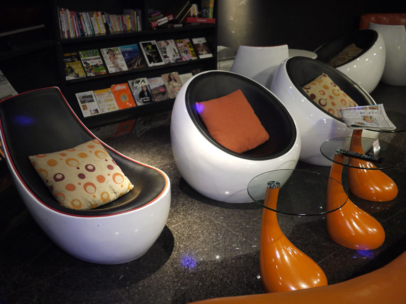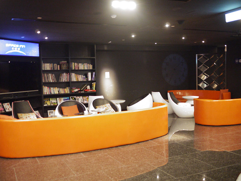 進入大廳後,這是一個24小時開放式空間,環境乾淨整潔,也很有自己的調調,後來睡不著就跑來這,沒想到很多人半夜都不睡覺….