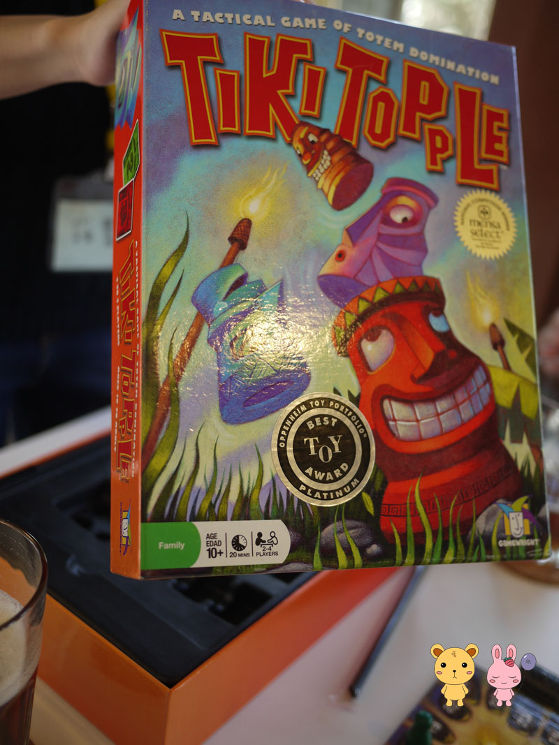 今天要介紹另外一款很該死又好玩的桌遊【tiki topple 推倒提基】,tiki topple為什麼該死呢?因為這次的第一名竟然是新手狗趴趴!勇奪了35分的成績,熊玩了幾場卻只拿到9分,這樣的結果也太沒天良了吧!不過遊戲就是這麼簡單,只要有人最先拿到35分,這場遊戲就結束了。