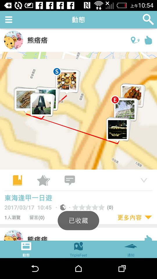 此時除了可以去最新動態那邊查詢外,也可以到我的足跡查查,都可以記錄起來,當然別人的足跡也都可以收藏,之後出門旅遊直接查看超方便!不用再擔心找不到地方玩囉!