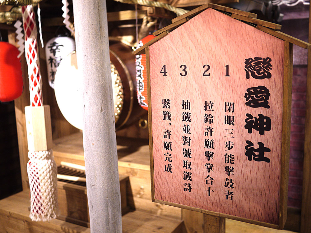 沒辦法去京都的戀愛神社終結單身嗎?沒關係,這邊有個盜版的可以讓大家假裝一下,旁邊還有許願的流程教學呢。